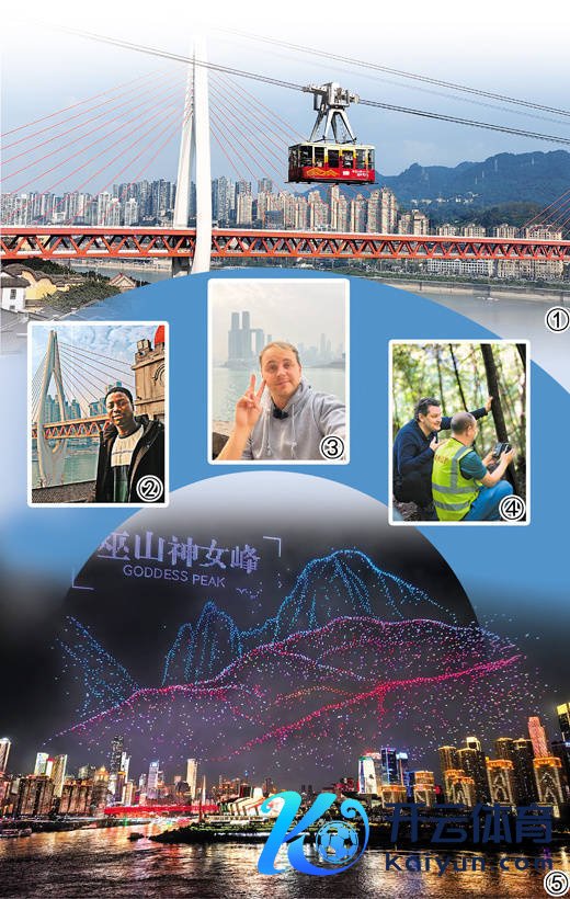 图①:长江不雅光索谈缆车从东水门大桥、湖广会馆旁流程。 本报记者 姜 峰摄 图②:伊玛在重庆东水门长江大桥旁。 图③:马丁在重庆长江与嘉陵江交织处留影。 图④:亚历克斯(左)在重庆阴条岭国度级当然保护区采访。 图⑤:重庆夜晚的无东谈主机饰演。 本报记者 姜 峰摄 本文像片除签字外均为受访者提供