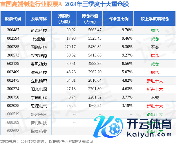 富国高端制造行业股票A为股票型基金,凭证最新一期基金季报表示,该基金钞票建立:股票占净值比93.16%,无债券类钞票,现款占净值比6.53%。基金十大重仓股如下: