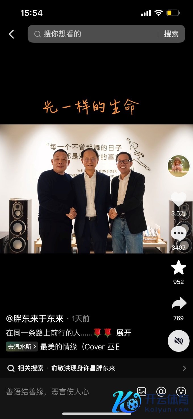 2月26日,于东来在酬酢媒体共享了与新东方创举东谈主俞敏洪、物好意思集团创举东谈办法文中三东谈主的合影,并配文称“在消失条路向前行的东谈主”。