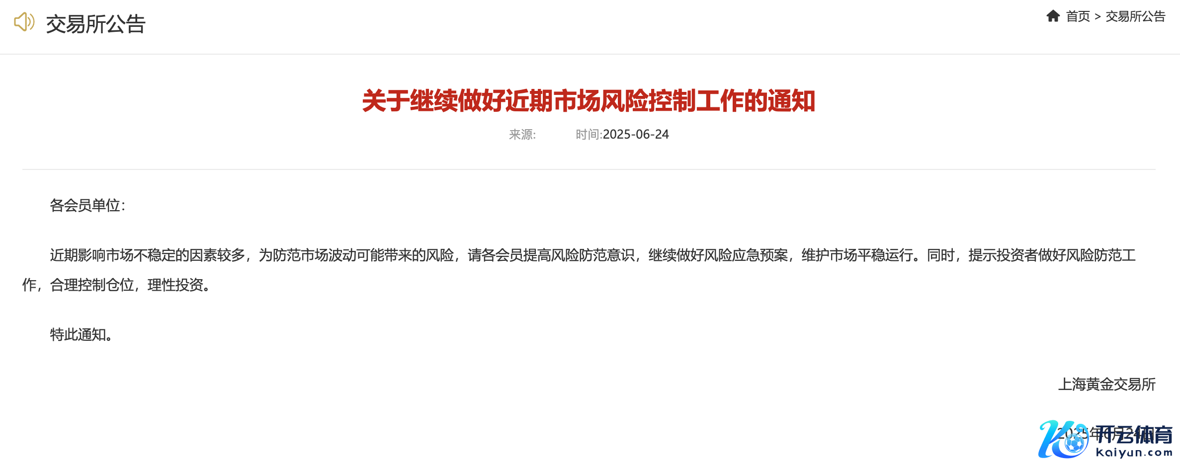 上金所发布对于接续作念好近期市集风险限制使命的见知体育游戏app平台上金所发布对于接续作念好近期市集风险限制使命的见知